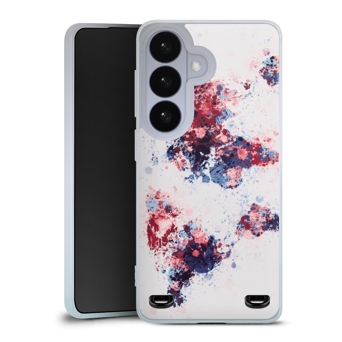 World Map Paint Splashes Blue Red