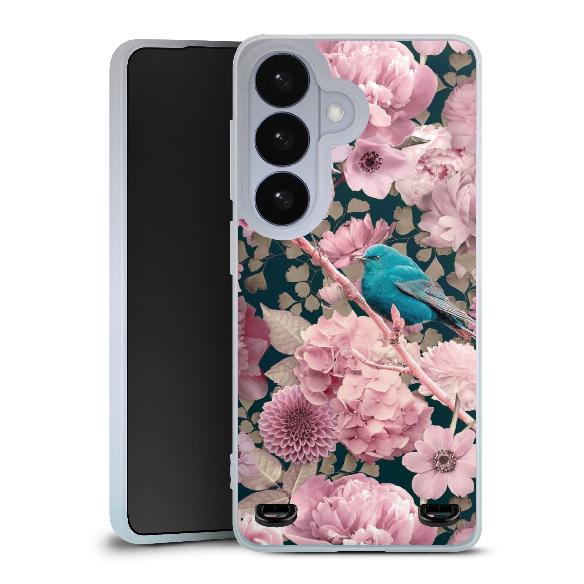 Sparrows in Pink Flower Pattern