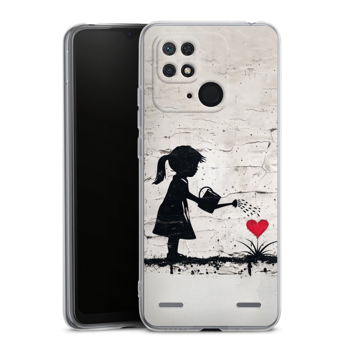 Girl Watering Bunch of Flowers