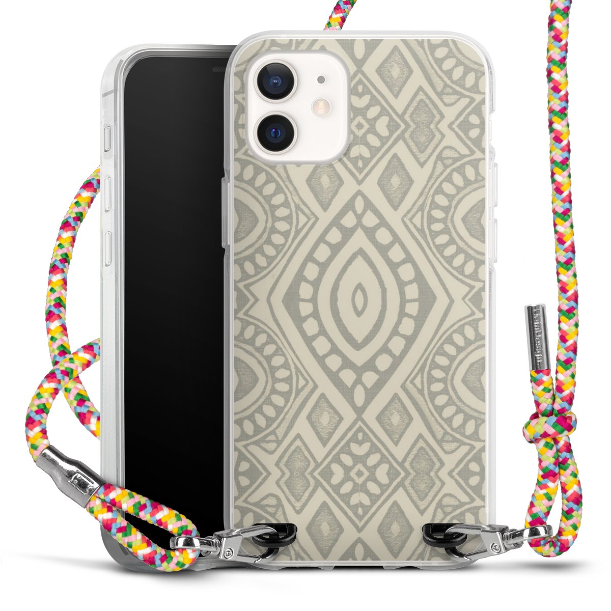 Boho Geometric Mosaic Pattern Neutral Grey and Beige