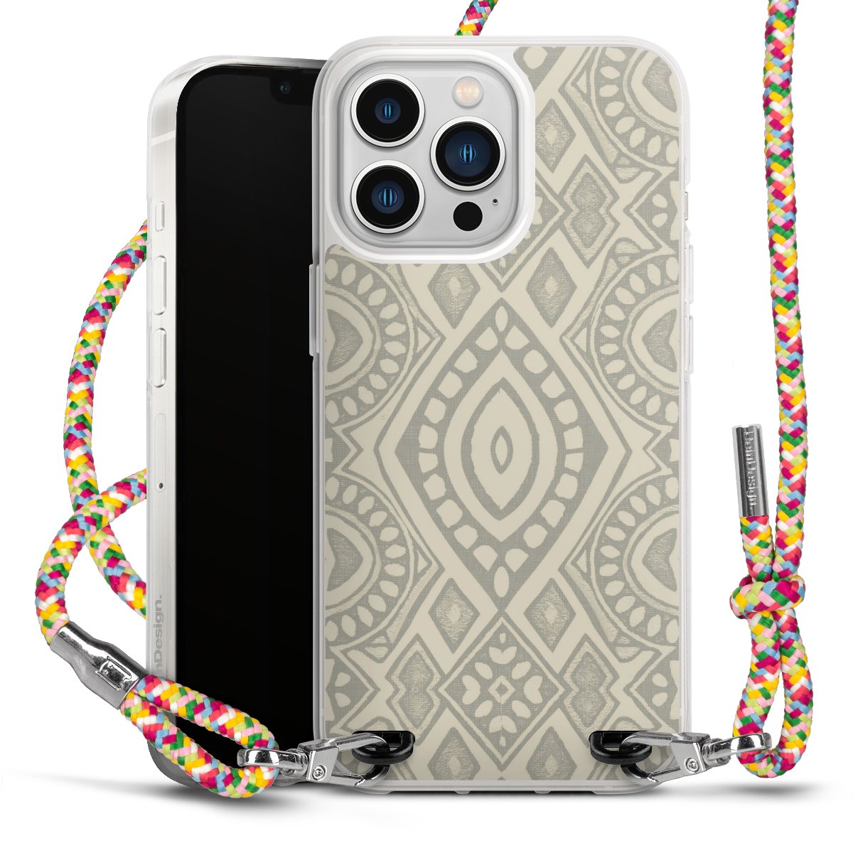 Boho Geometric Mosaic Pattern Neutral Grey and Beige