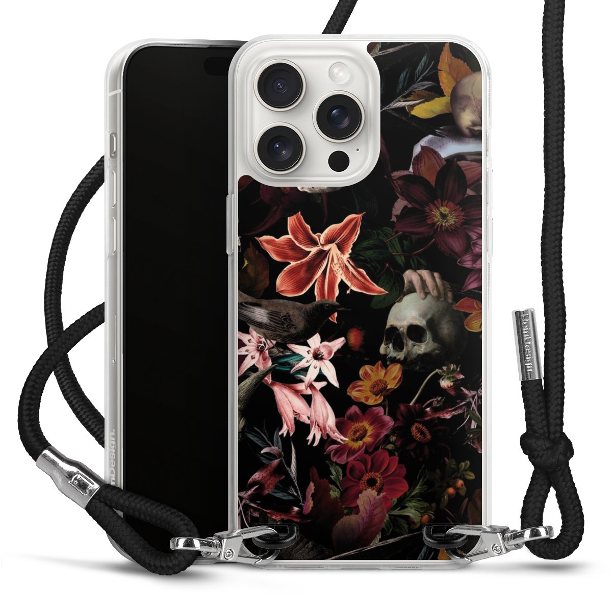Skulls and Flowers on Dark Background