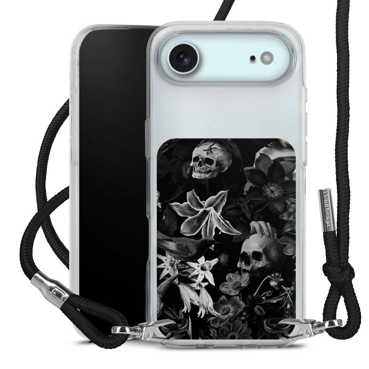 Skulls and Flowers on Black Background