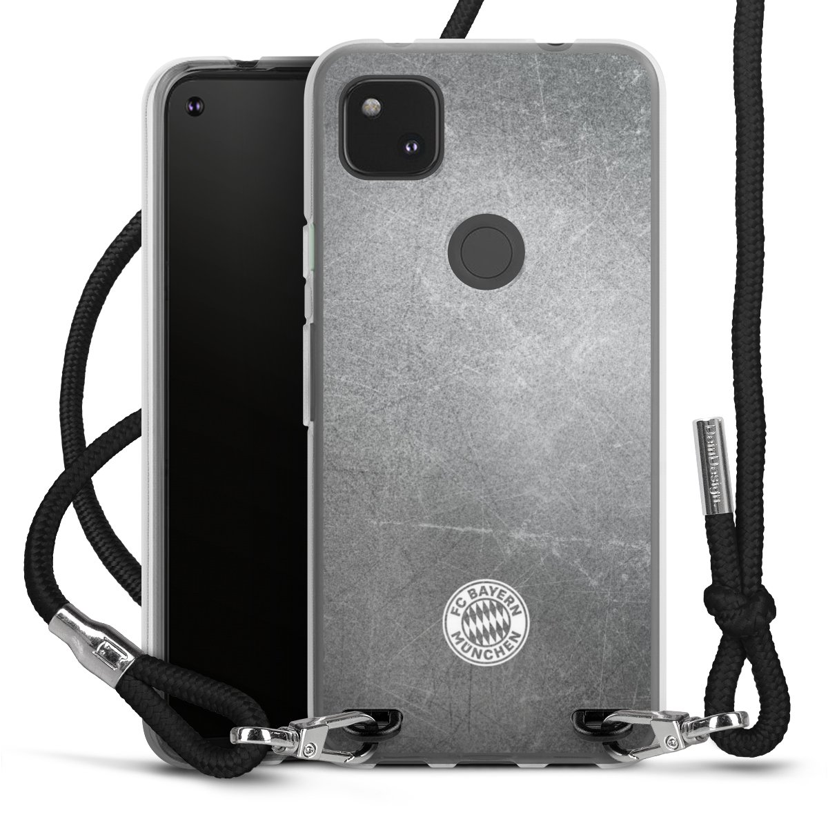 Klassisches FCB Logo Klein - Weiß auf Metalllook