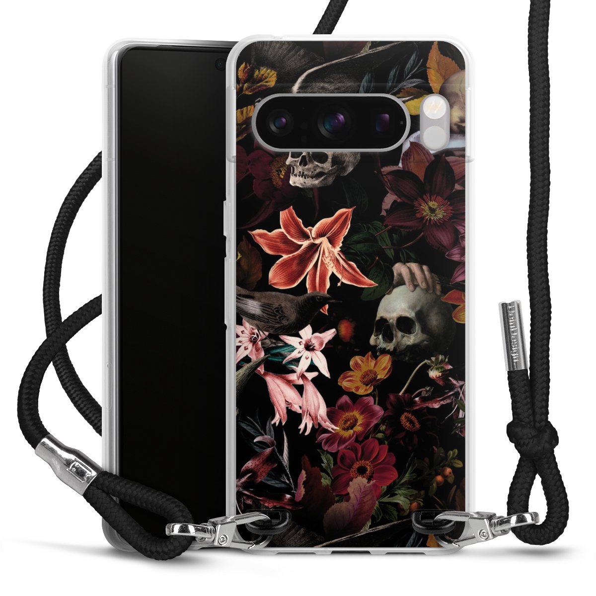 Skulls and Flowers on Dark Background