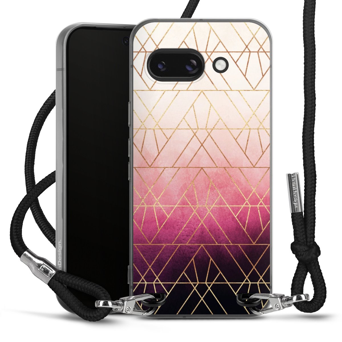 Pink Ombre Triangles Gold Print