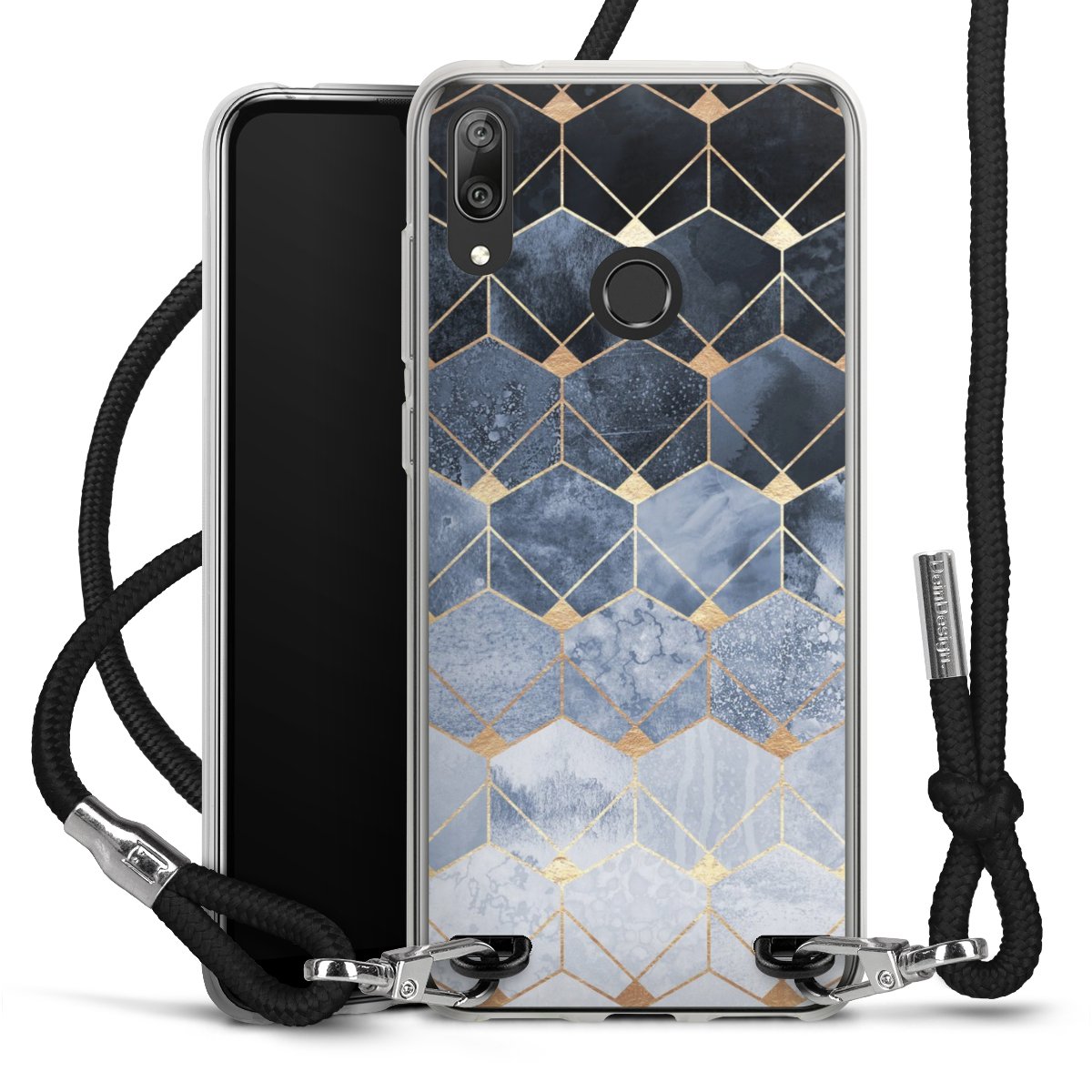 Blue Hexagons And Diamonds Gold Print