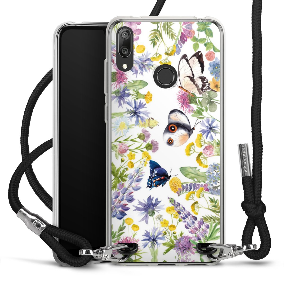 Bunte Frühlingsblumen und Schmetterlinge