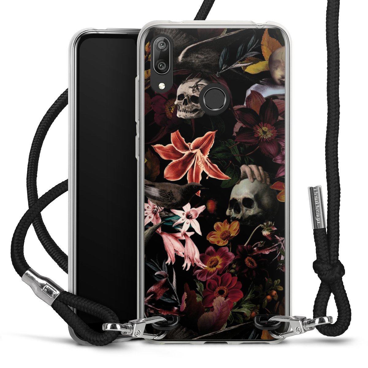 Skulls and Flowers on Dark Background