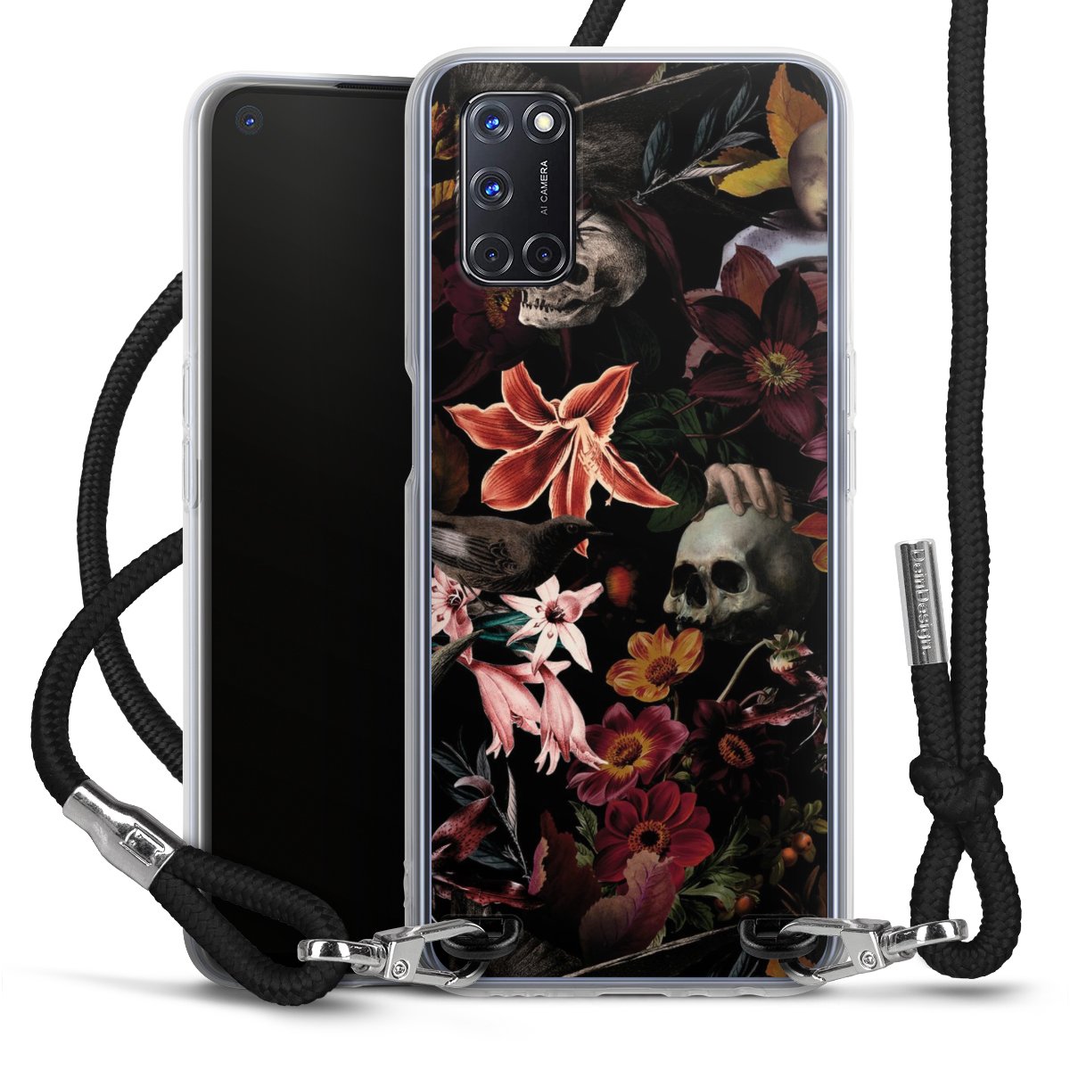 Skulls and Flowers on Dark Background