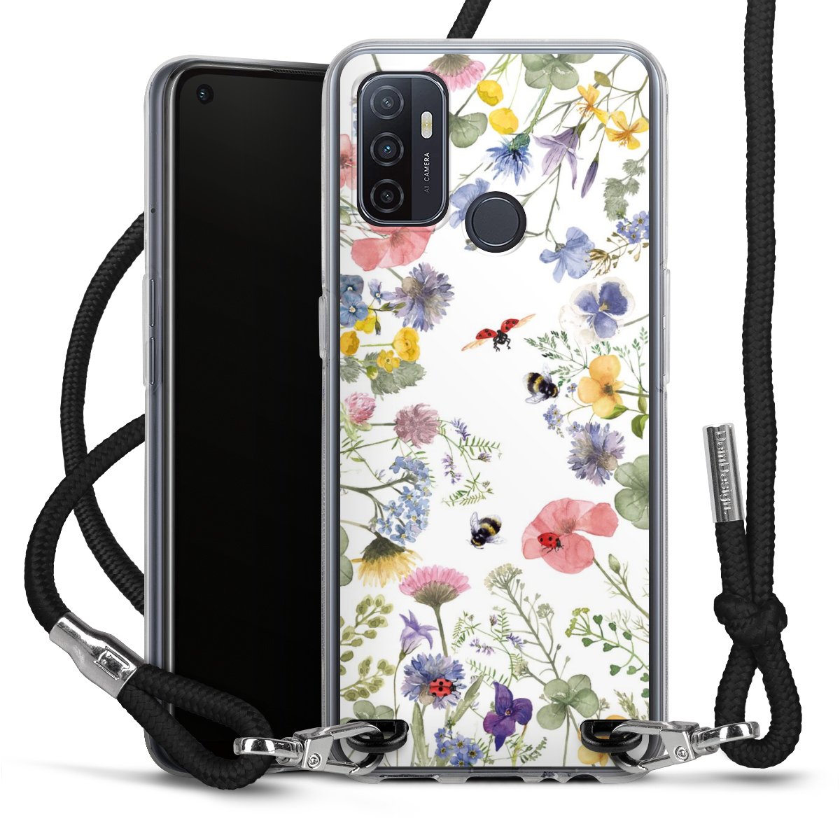 Bunte Frühlingsblumen und Bienen