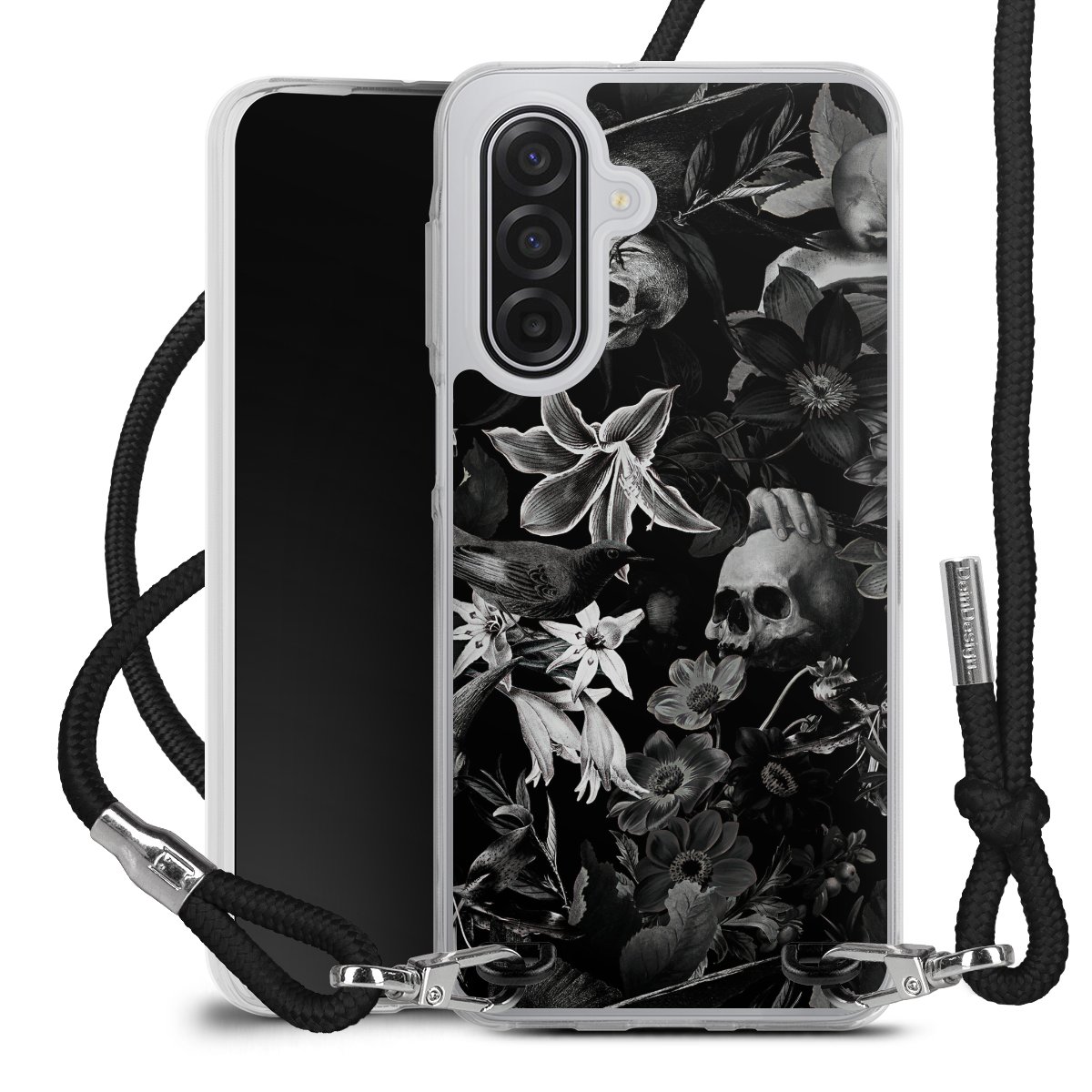 Skulls and Flowers on Black Background