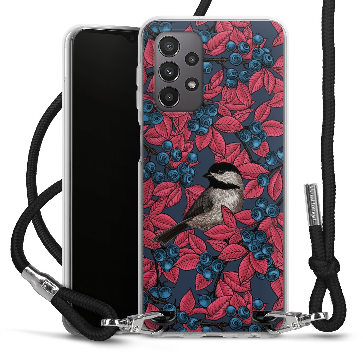 Blueberries And Birds On Navy