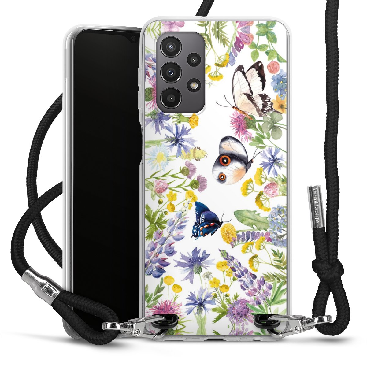 Bunte Frühlingsblumen und Schmetterlinge
