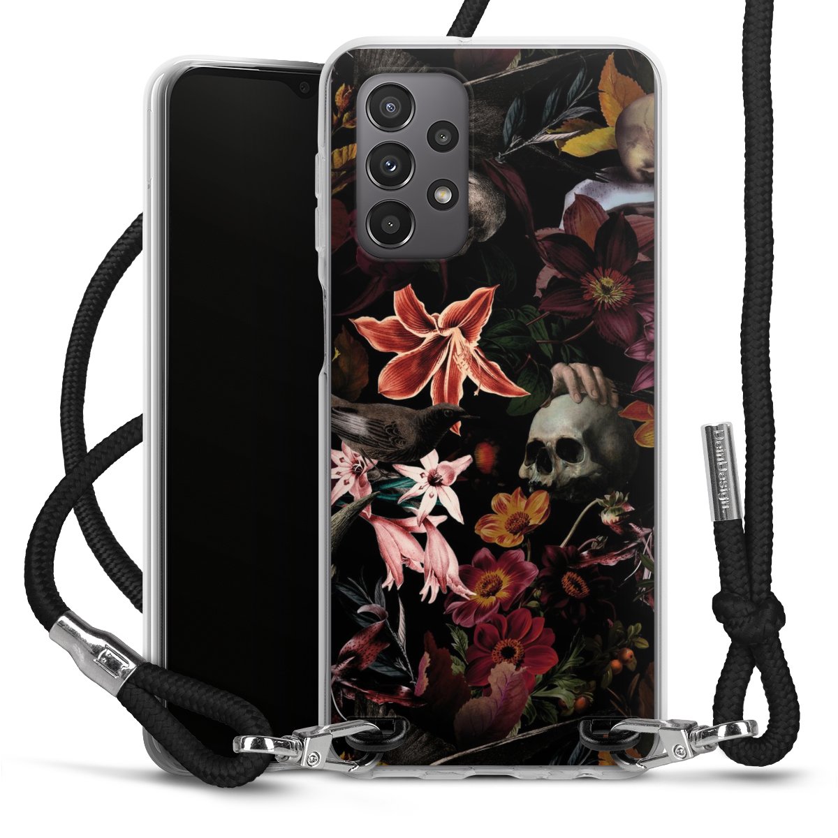 Skulls and Flowers on Dark Background