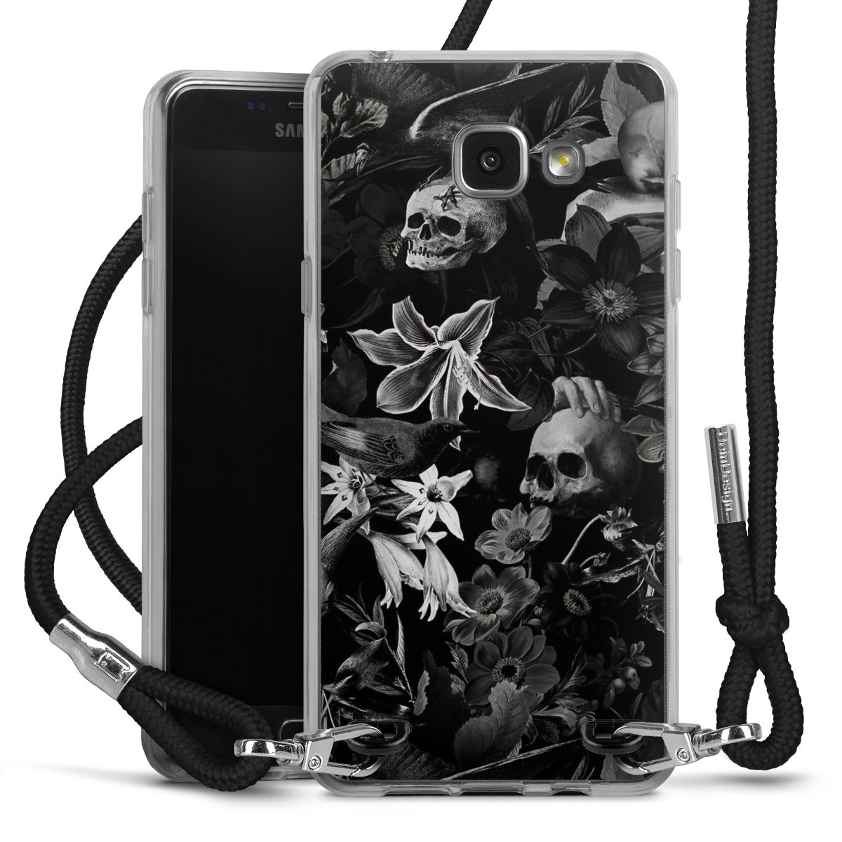 Skulls and Flowers on Black Background
