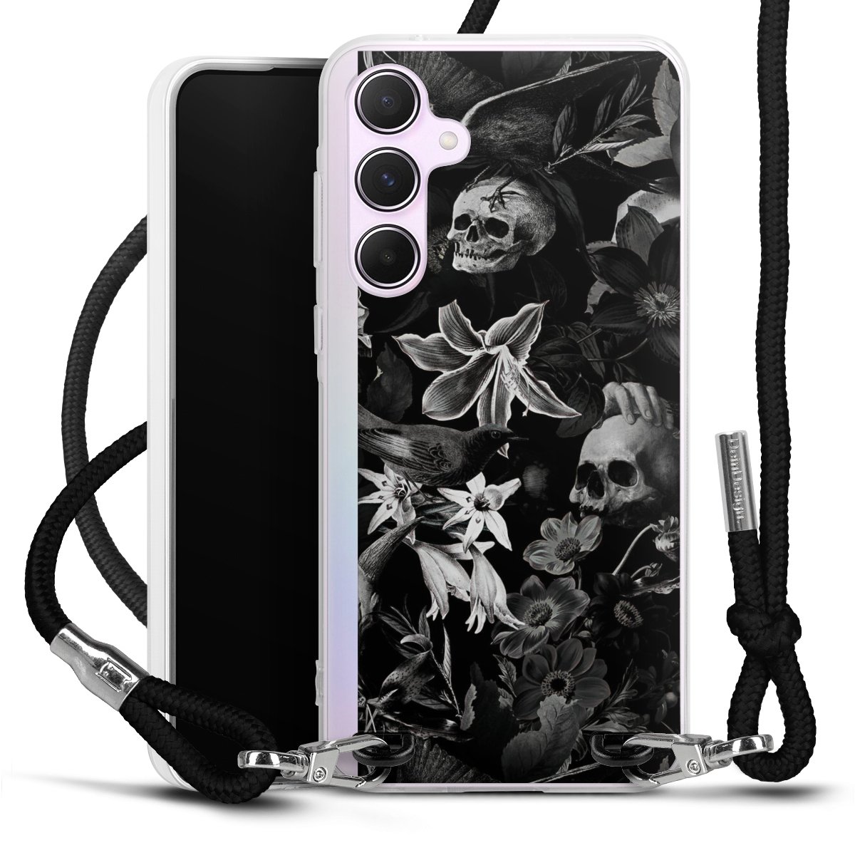 Skulls and Flowers on Black Background
