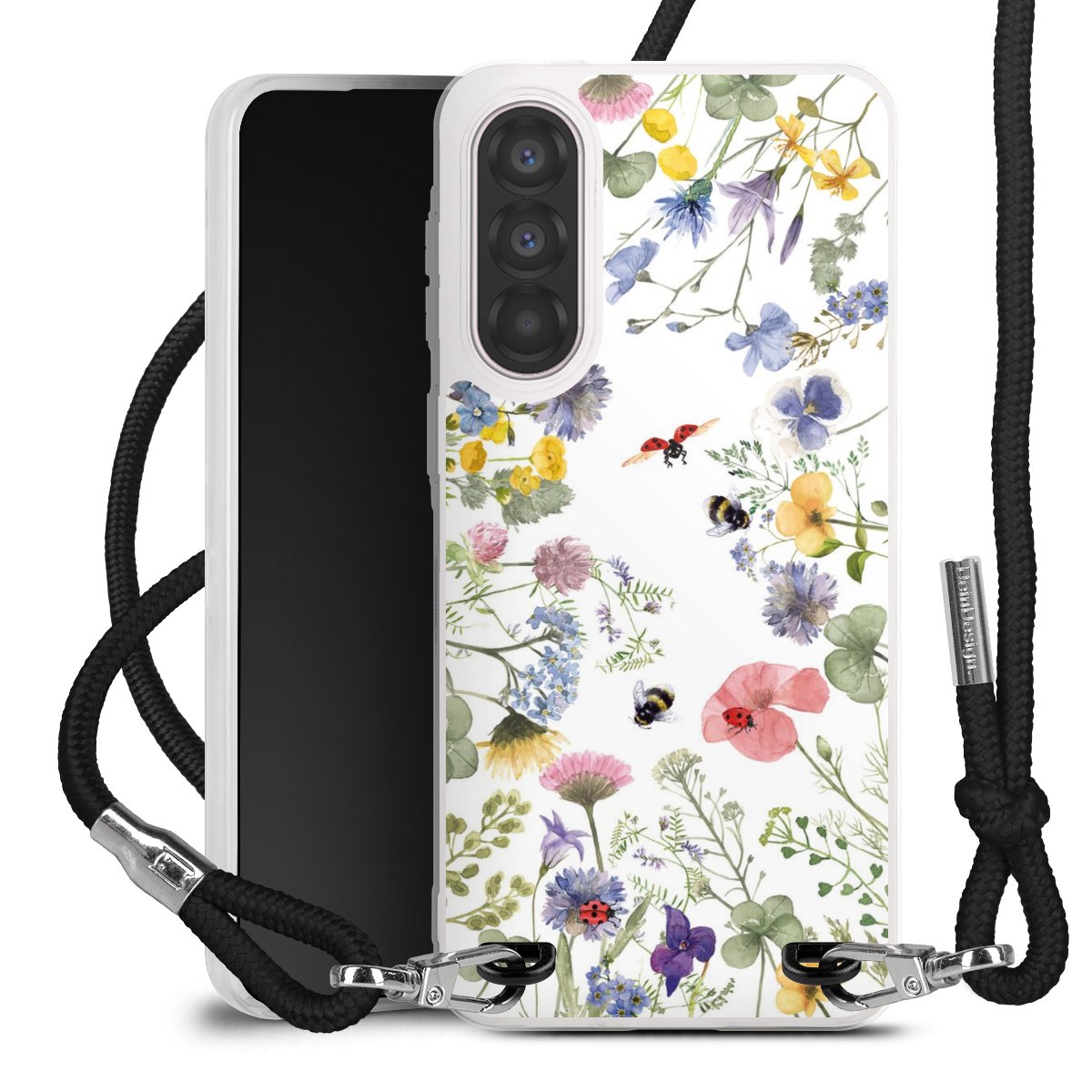 Bunte Frühlingsblumen und Bienen