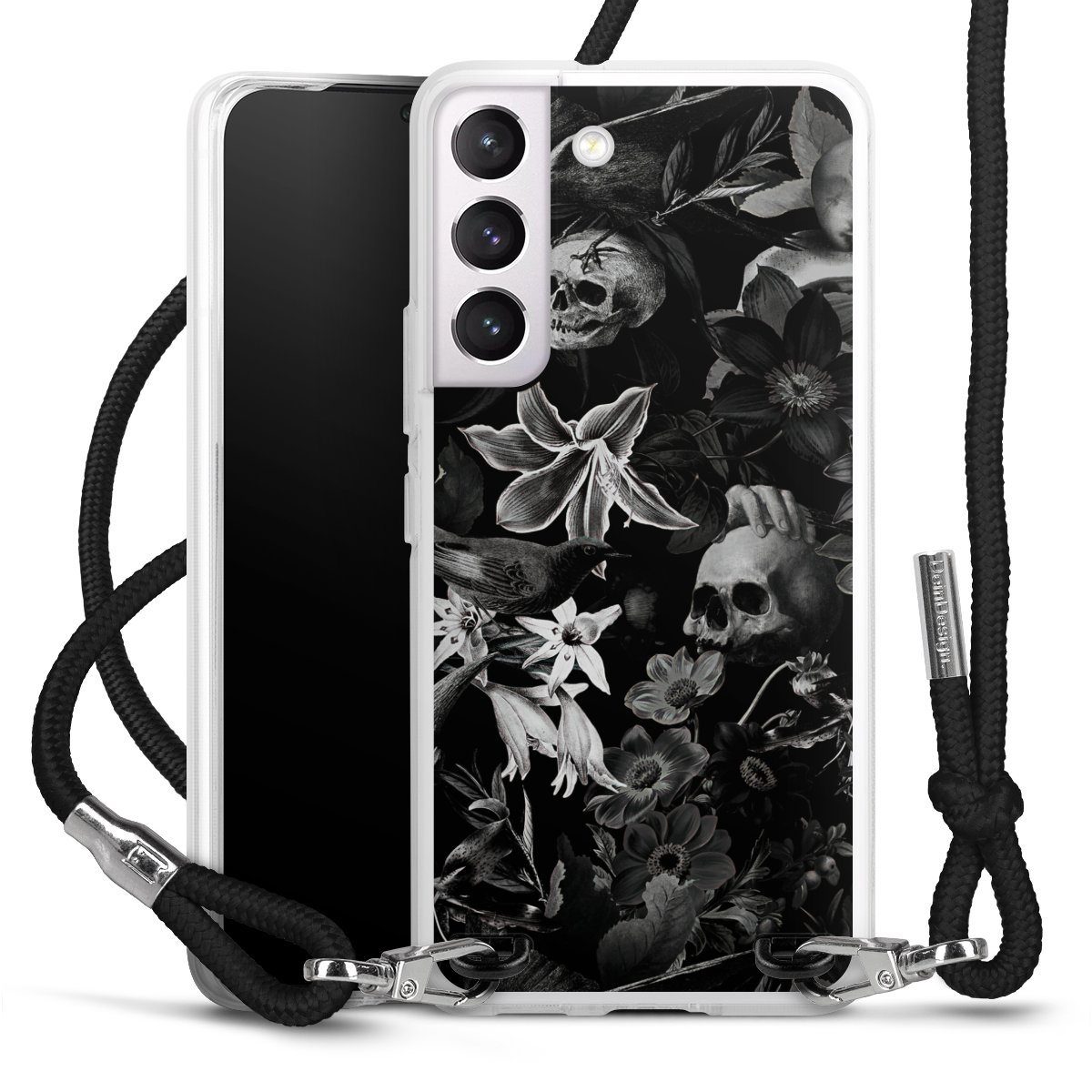 Skulls and Flowers on Black Background