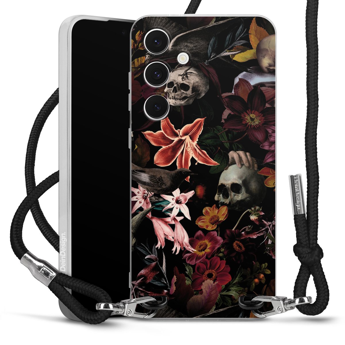Skulls and Flowers on Dark Background