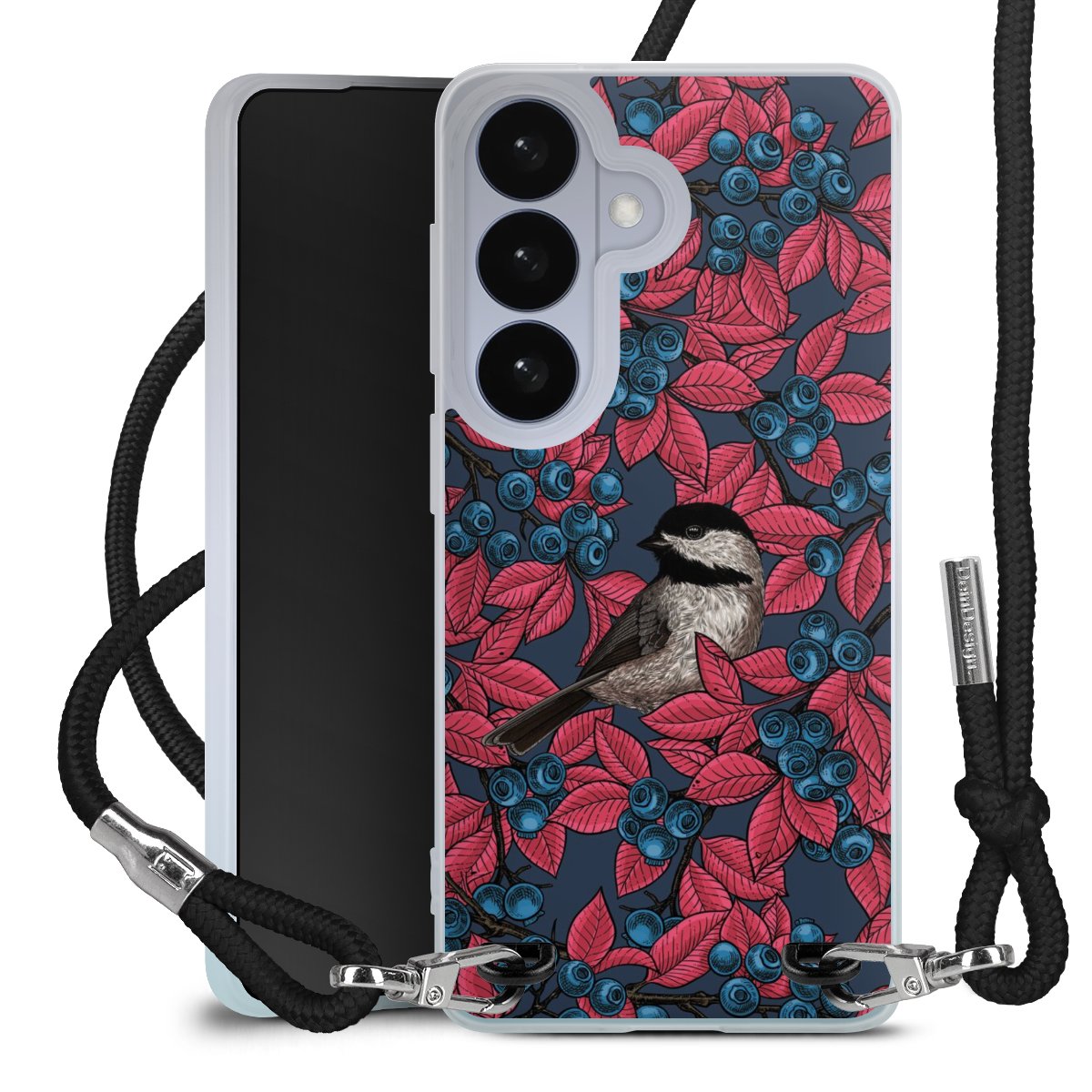 Blueberries And Birds On Navy