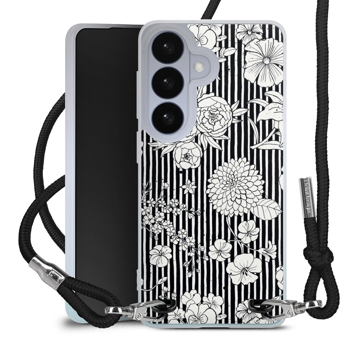 Flowers and Stripes Black and White