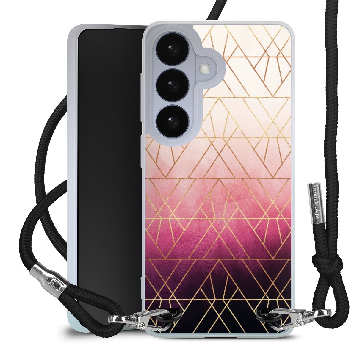 Pink Ombre Triangles Gold Print