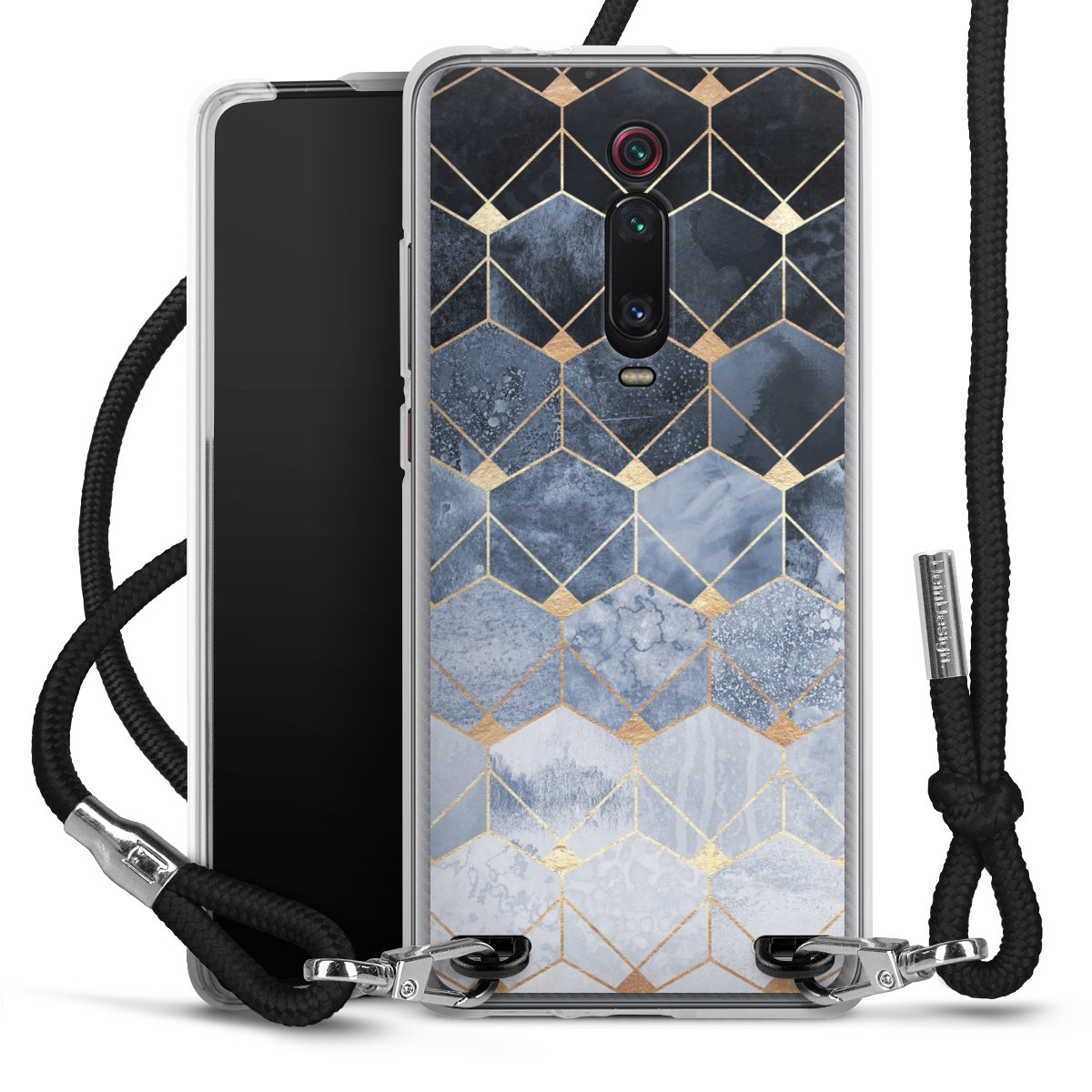 Blue Hexagons And Diamonds Gold Print
