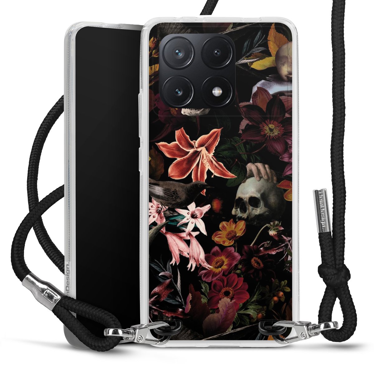 Skulls and Flowers on Dark Background