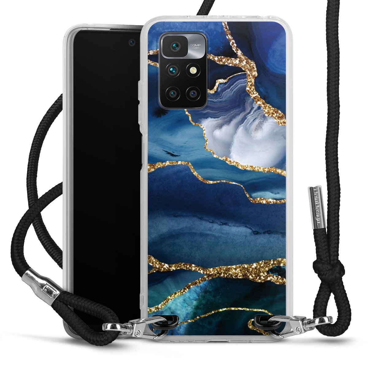 Blue Marble Gold Glitter Look