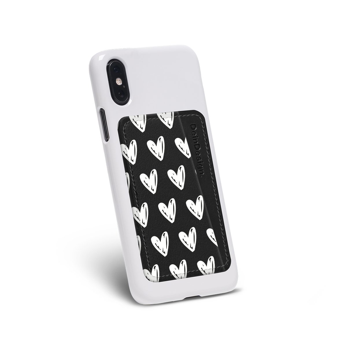 We advise to clean your phone case with a soft cloth and a mild detergent first. On the back of the card holder you will find an adhesive strip. Pull off the protective film and press the card holder firmly against the phone case – that’s it!