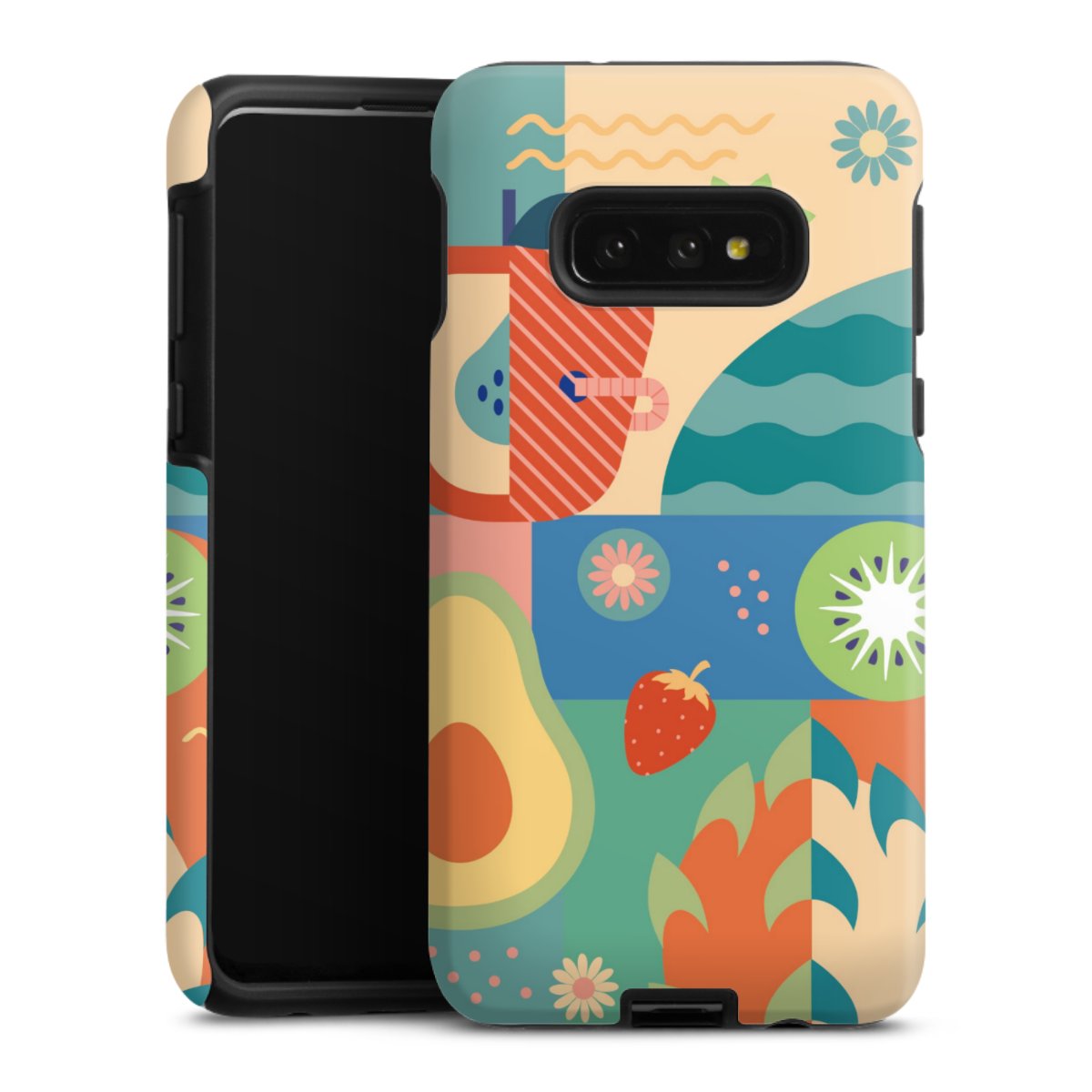 Printteknik För vårt Tough Case använder vi vårt speciellt avancerade och hållbara sublimeringsprint. Denna raffinerade teknik utmärker sig genom sitt högkvalitativa, briljanta och skarpa tryck. Utskriftsområdet täcker hela skalet: baksidan, ramen och kanterna är fullt printbara. Silikonkärnan förblir oprintad. Välj en av våra exklusiva, färdiga designer eller låt din kreativitet flöda och skapa din egen unika design med dina bilder, lager och text.