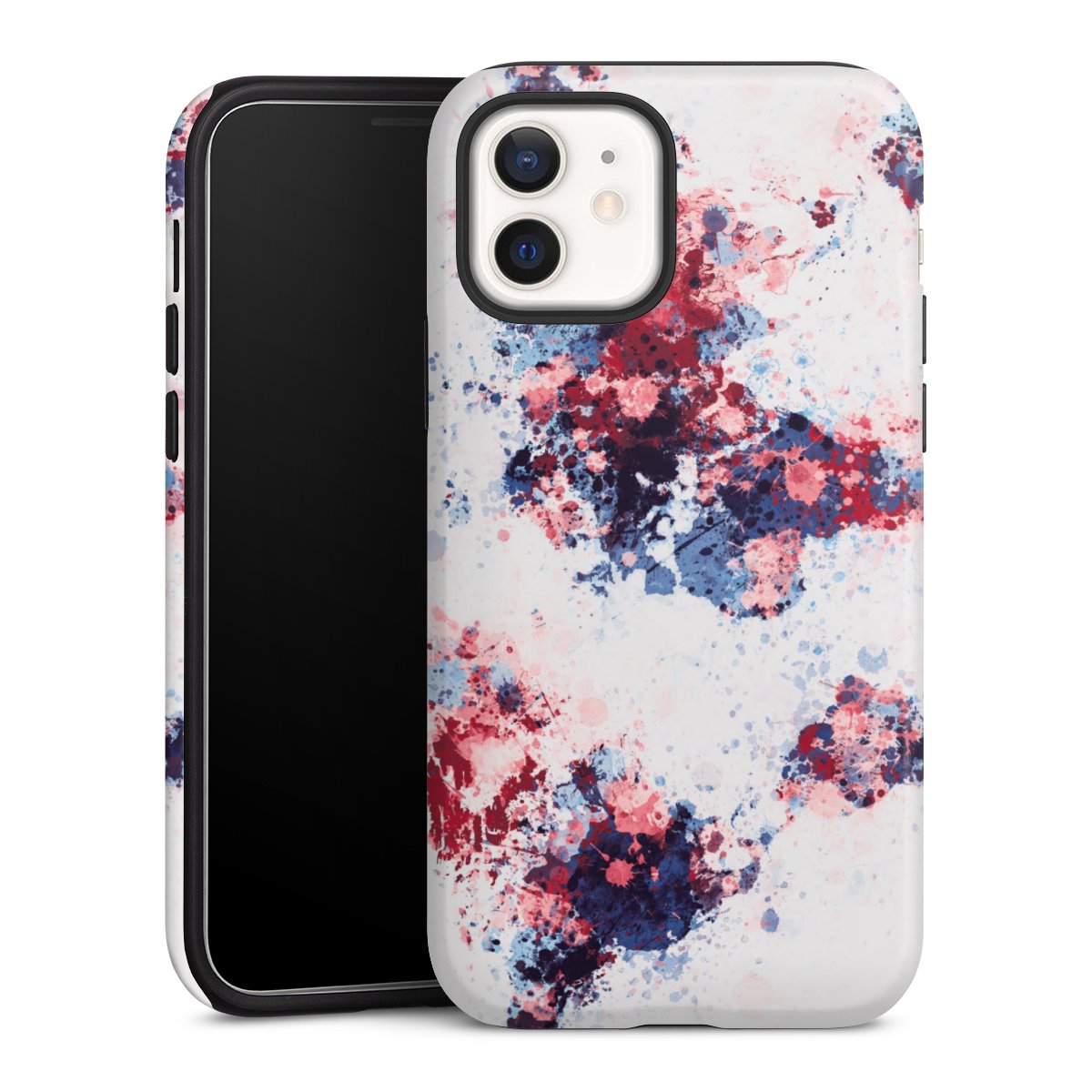 World Map Paint Splashes Blue Red