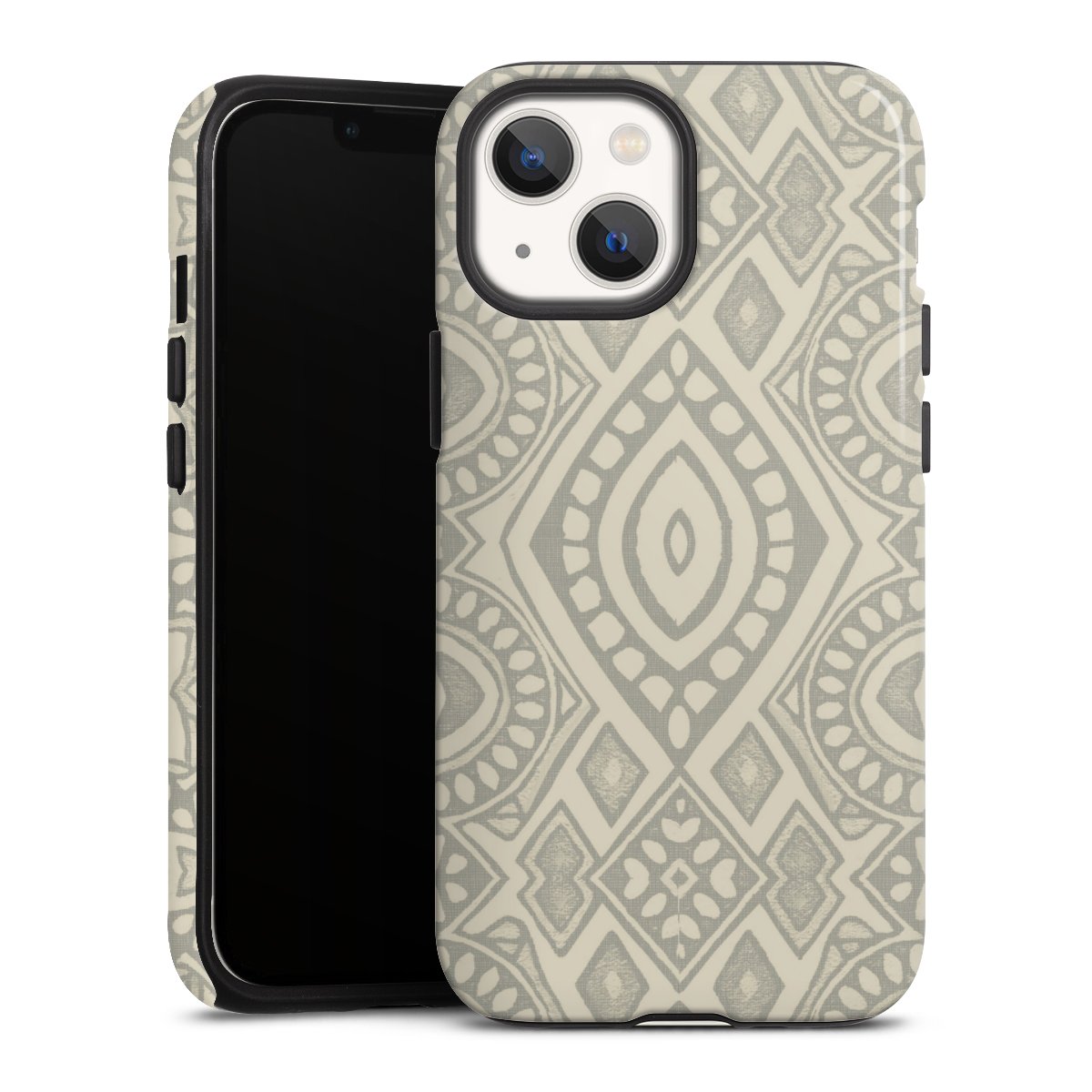 Boho Geometric Mosaic Pattern Neutral Grey and Beige