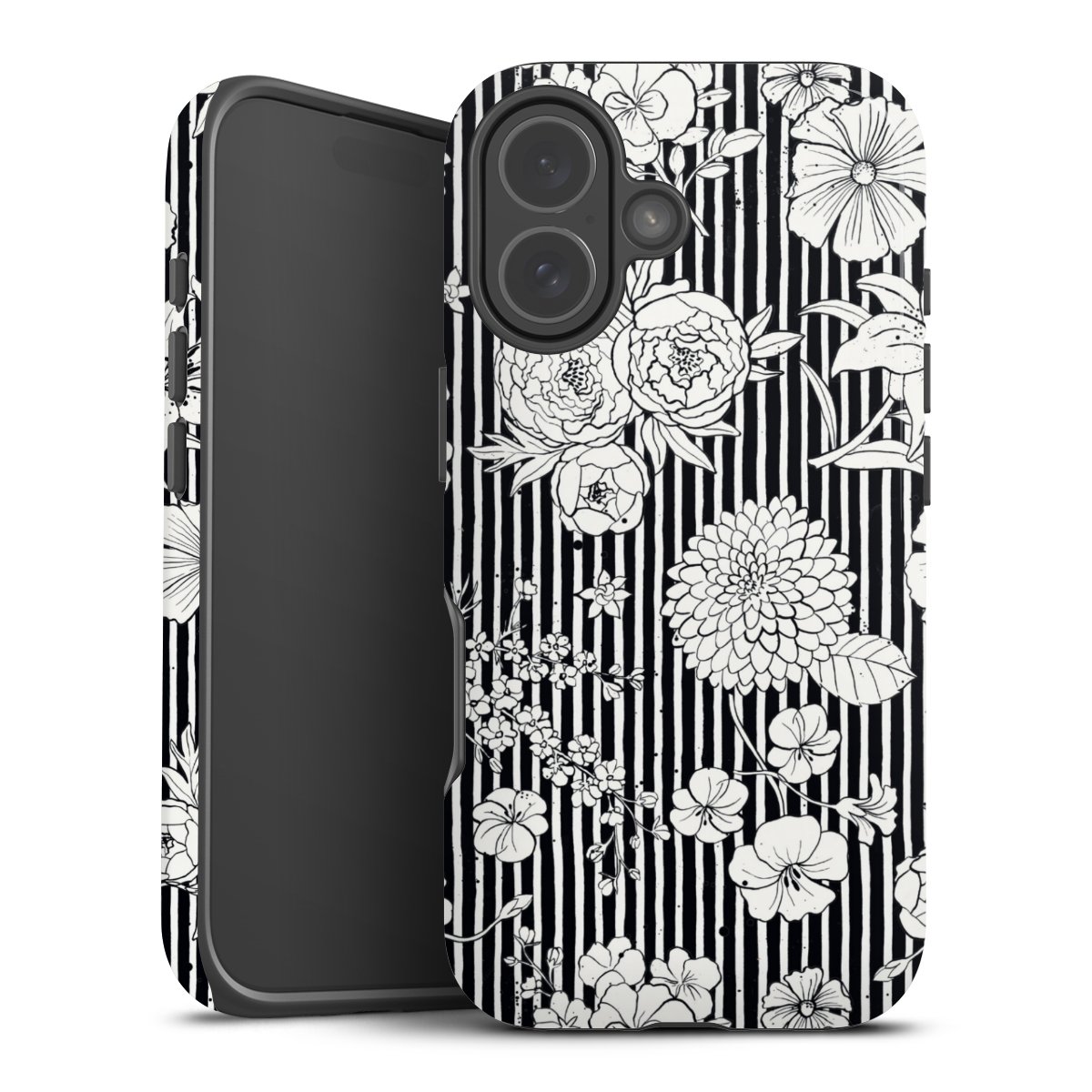 Flowers and Stripes Black and White