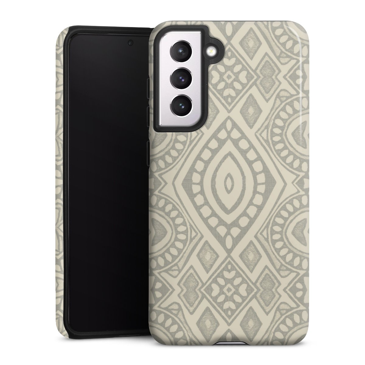 Boho Geometric Mosaic Pattern Neutral Grey and Beige