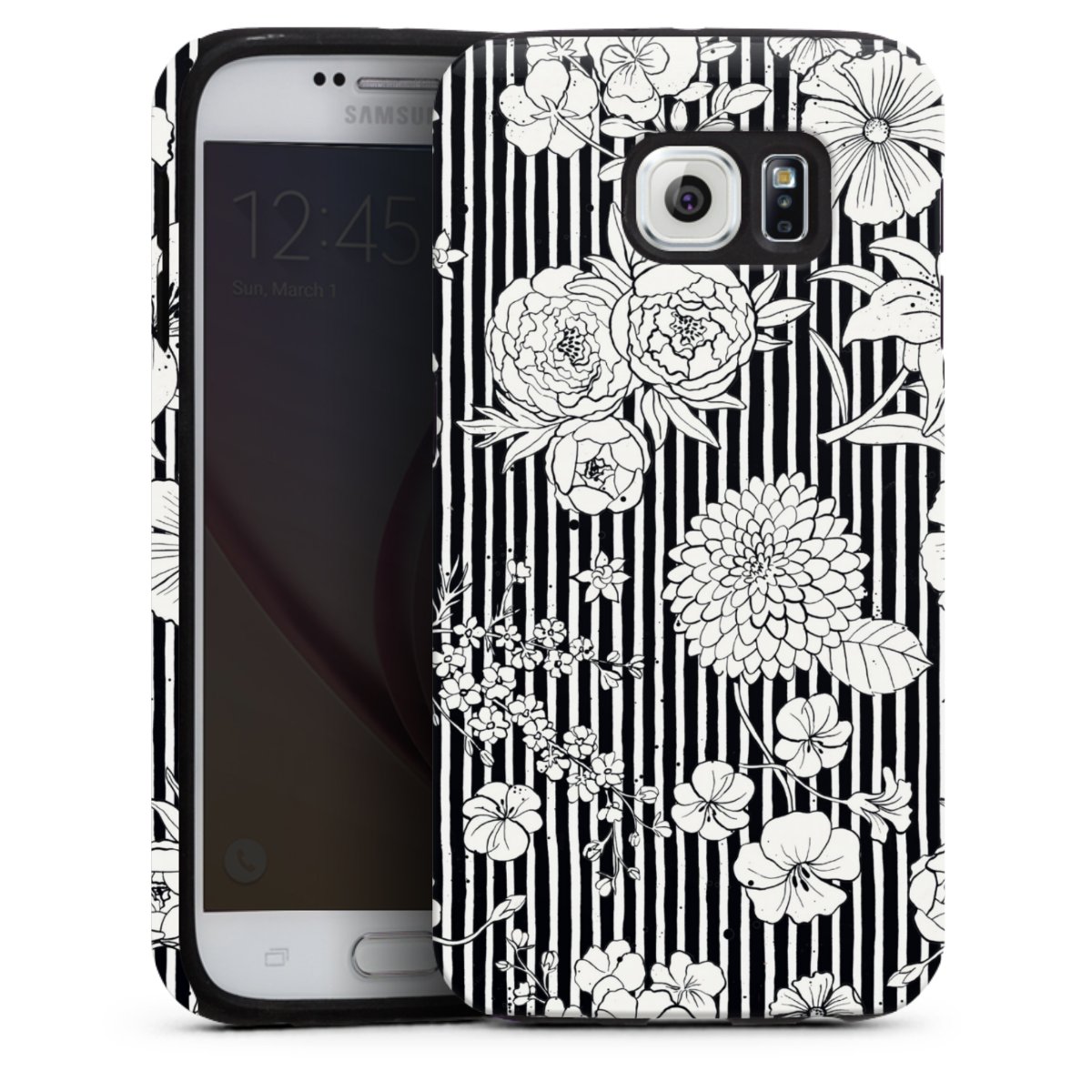 Flowers and Stripes Black and White