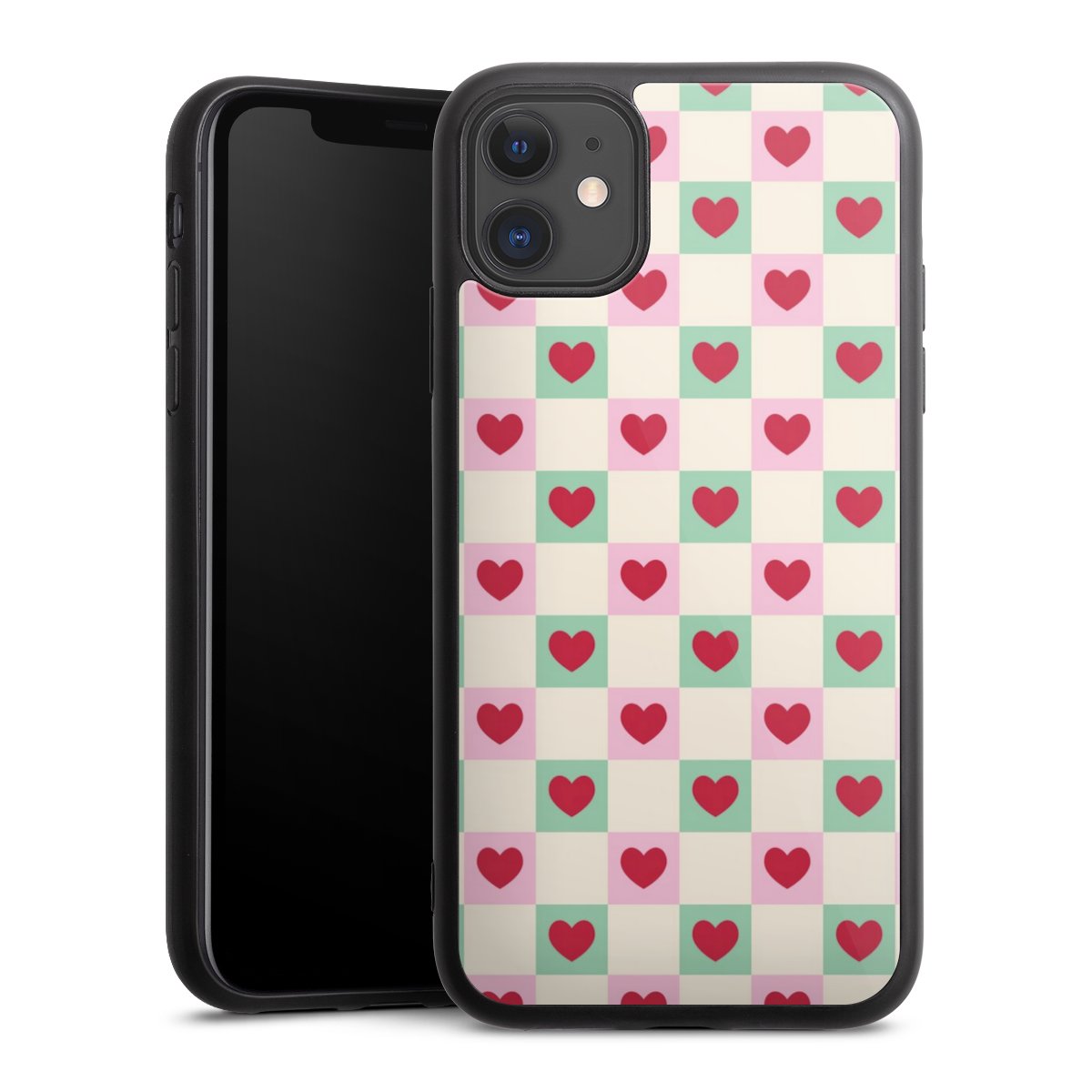 Valentine Checked Hearts Pattern Pink Green
