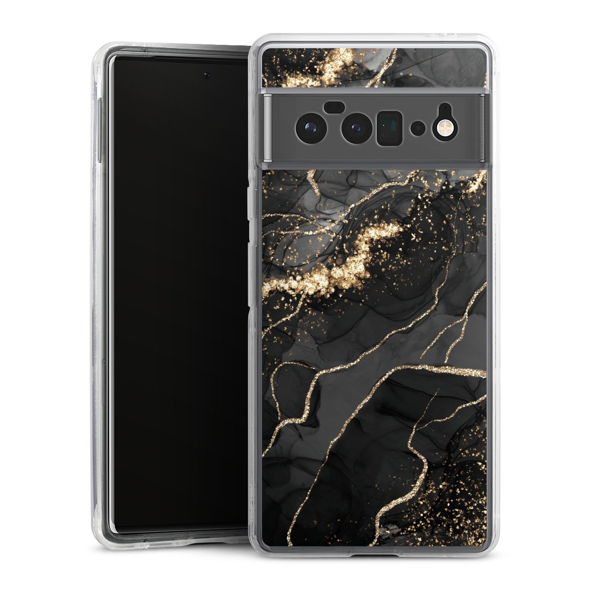Dark Marble Swirls Gold Look