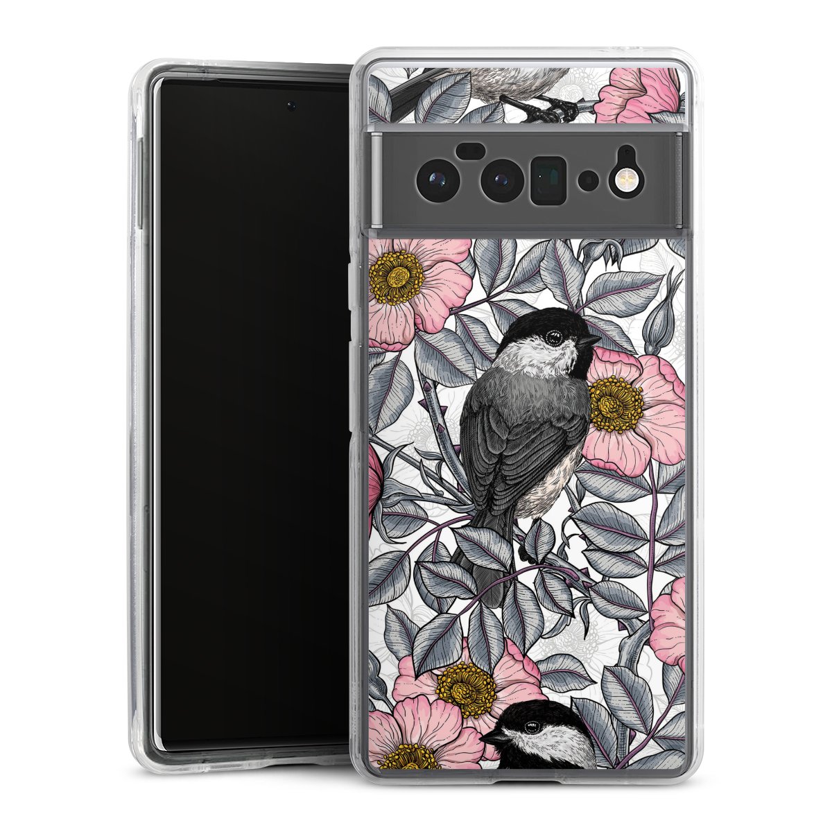 Chickadees and Wild Rose