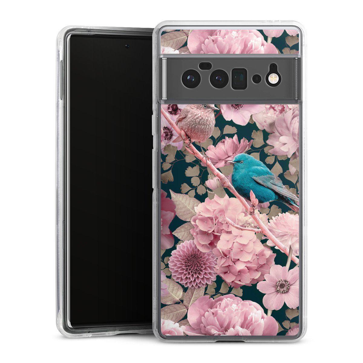Sparrows in Pink Flower Pattern