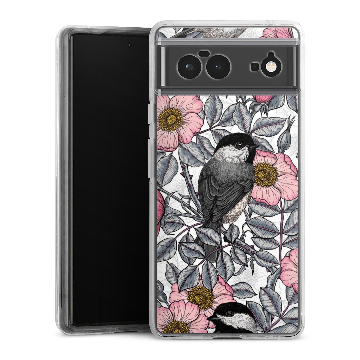 Chickadees and Wild Rose
