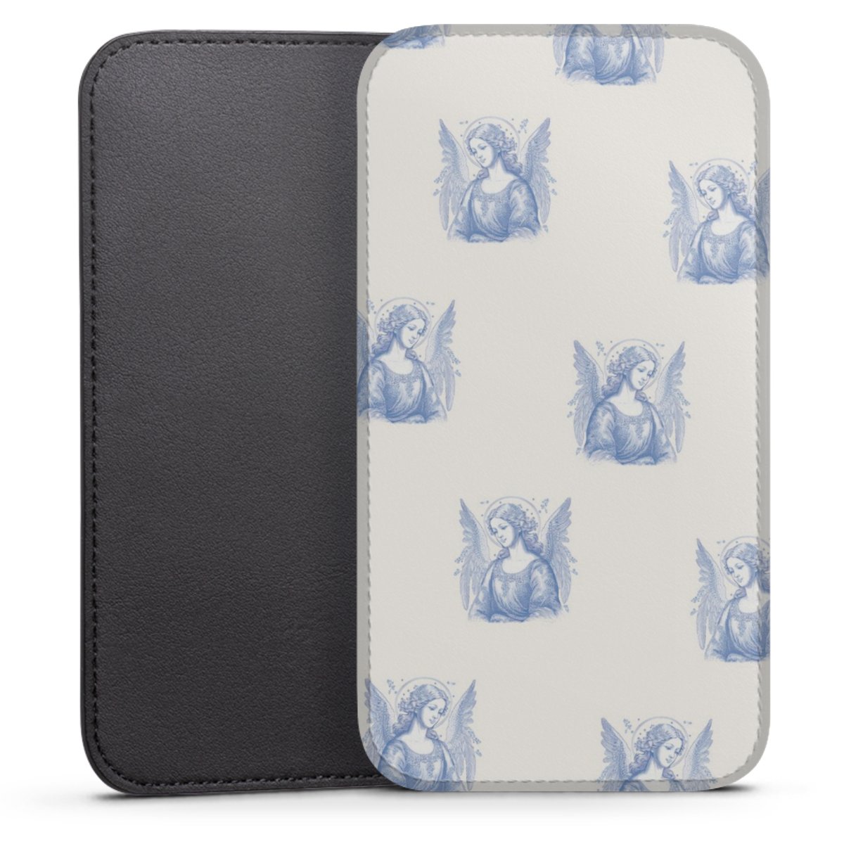 Produktdetaljer Denna praktiska ficka skyddar helt och hållet din enhet, och är tillverkad av en högkvalitativ vegansk Skai®-läderimitation i svart på baksidan och vit på den printningsbara framsidan.