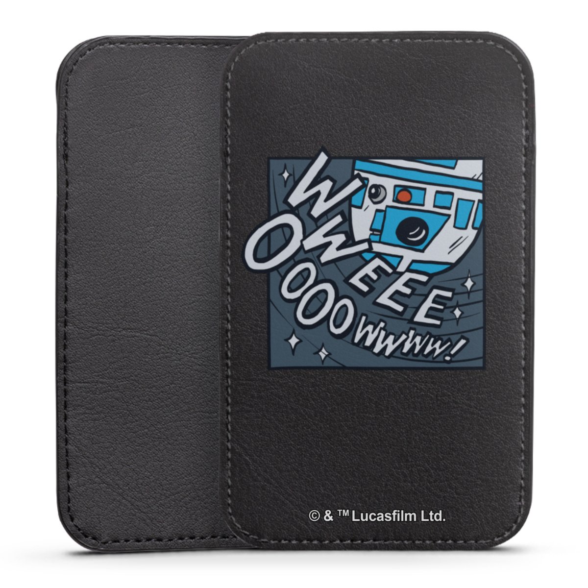 Produktdetaljer Denna praktiska ficka skyddar helt och hållet din enhet, och är tillverkad av en högkvalitativ vegansk Skai®-läderimitation i svart på baksidan och vit på den printningsbara framsidan.