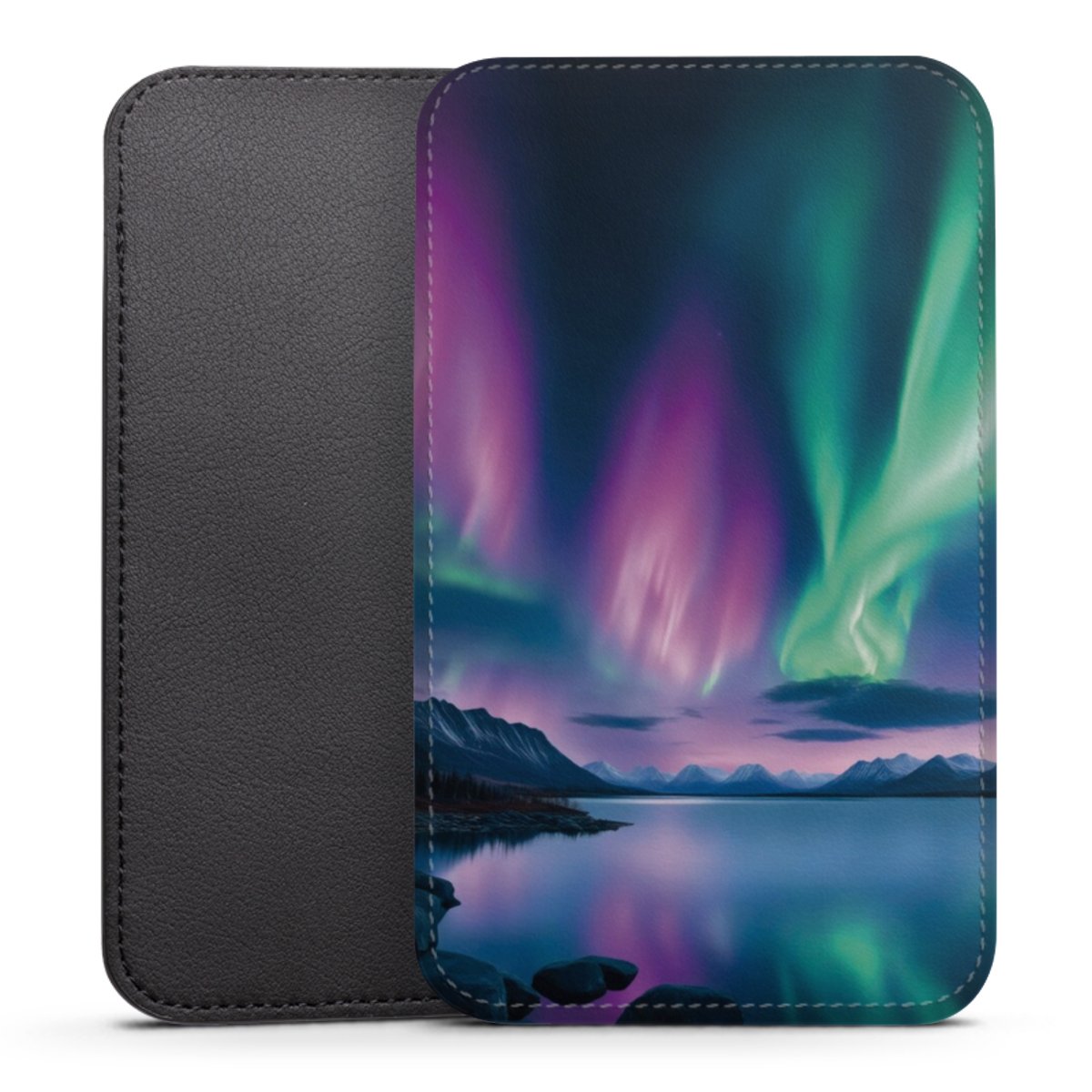 Produktdetaljer Denna praktiska ficka skyddar helt och hållet din enhet, och är tillverkad av en högkvalitativ vegansk Skai®-läderimitation i svart på baksidan och vit på den printningsbara framsidan.