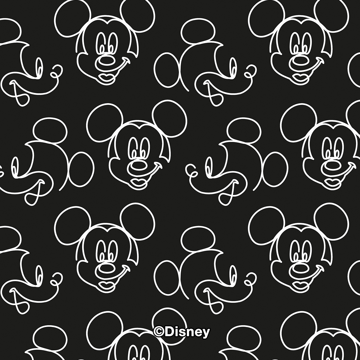 Disney Mickey Faces Black Line Art Pattern