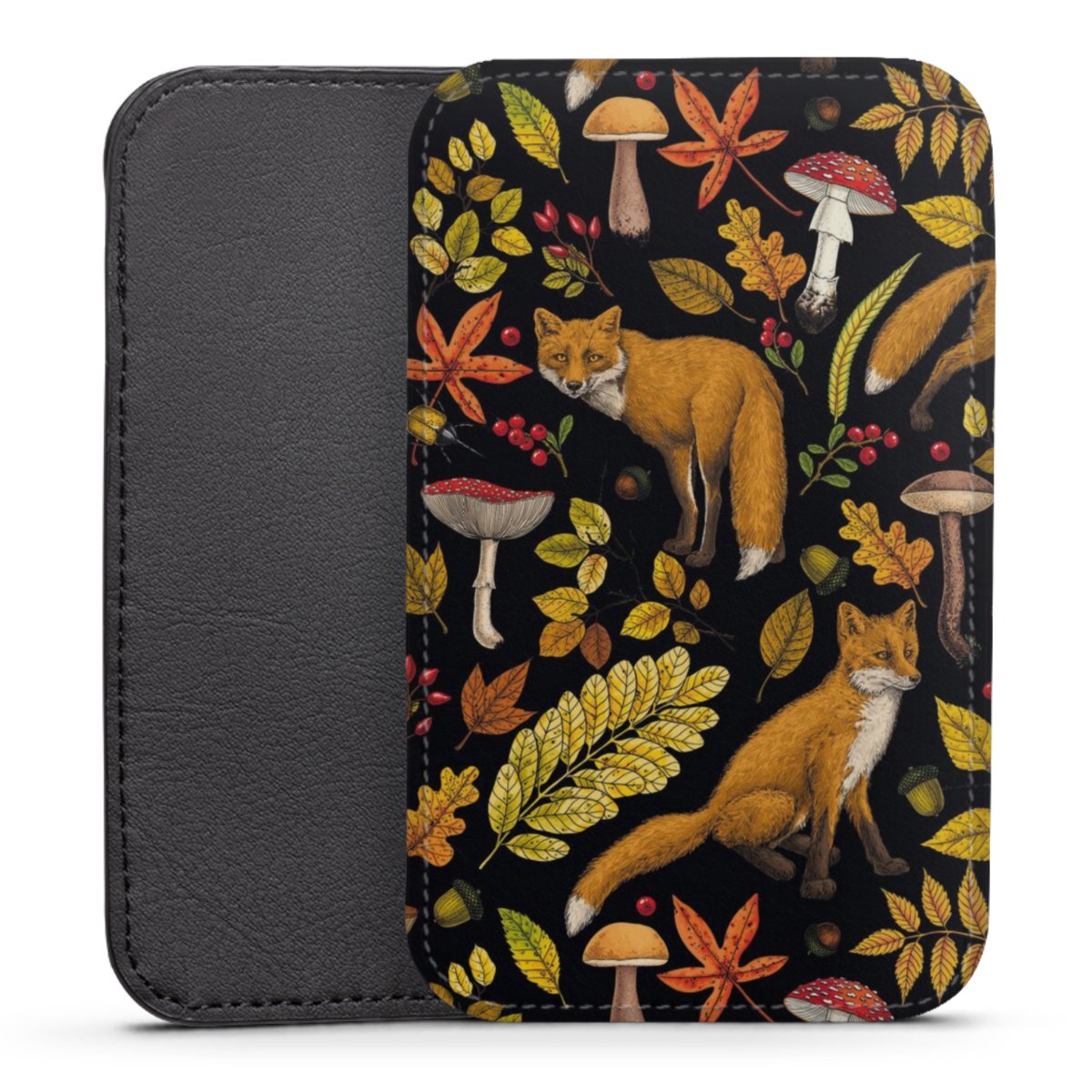 Produktdetaljer Denna praktiska ficka skyddar helt och hållet din enhet, och är tillverkad av en högkvalitativ vegansk Skai®-läderimitation i svart på baksidan och vit på den printningsbara framsidan.