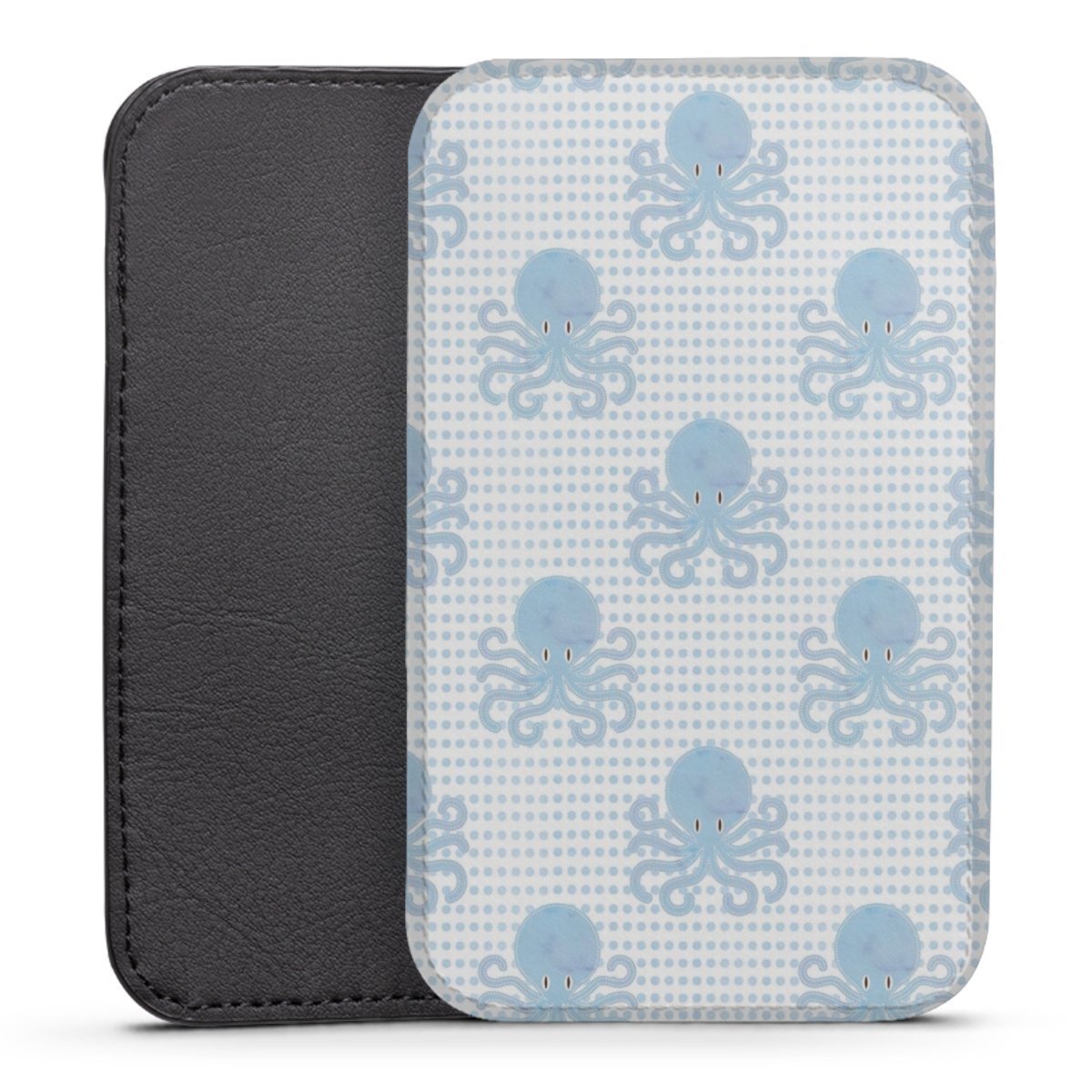 Produktdetaljer Denna praktiska ficka skyddar helt och hållet din enhet, och är tillverkad av en högkvalitativ vegansk Skai®-läderimitation i svart på baksidan och vit på den printningsbara framsidan.