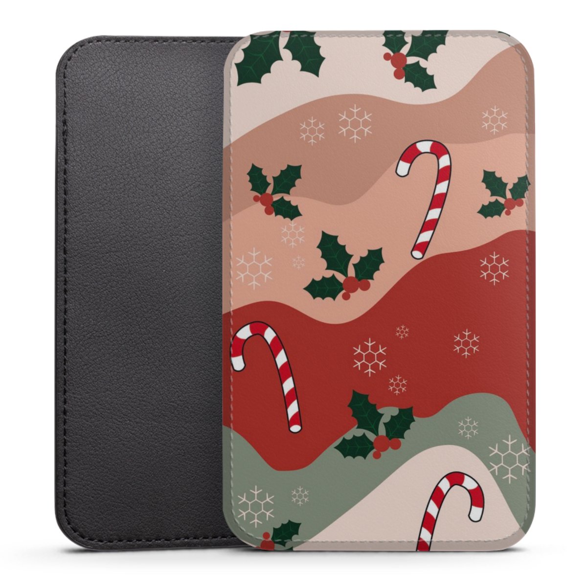 Produktdetaljer Denna praktiska ficka skyddar helt och hållet din enhet, och är tillverkad av en högkvalitativ vegansk Skai®-läderimitation i svart på baksidan och vit på den printningsbara framsidan.
