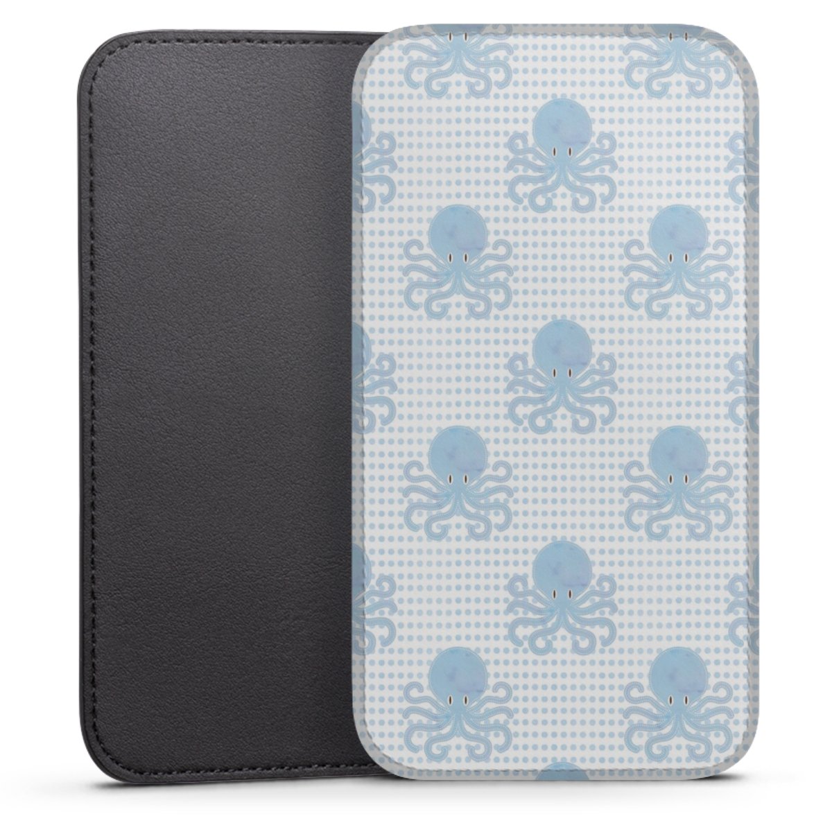 Produktdetaljer Denna praktiska ficka skyddar helt och hållet din enhet, och är tillverkad av en högkvalitativ vegansk Skai®-läderimitation i svart på baksidan och vit på den printningsbara framsidan.
